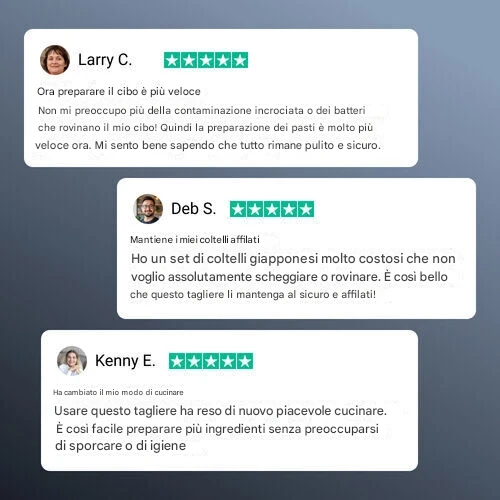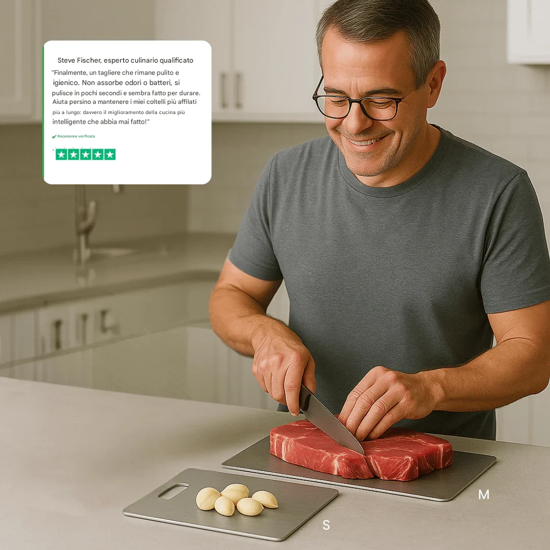 Ero scettico, ma wow! È molto più robusto e sembra più igienico. Tagli netti, non scivola, nessun odore persistente: prima usavo un tagliere di legno, ma intrappolava sempre l'umidità e mi sembrava poco igienico. Ne è valsa decisamente la pena.