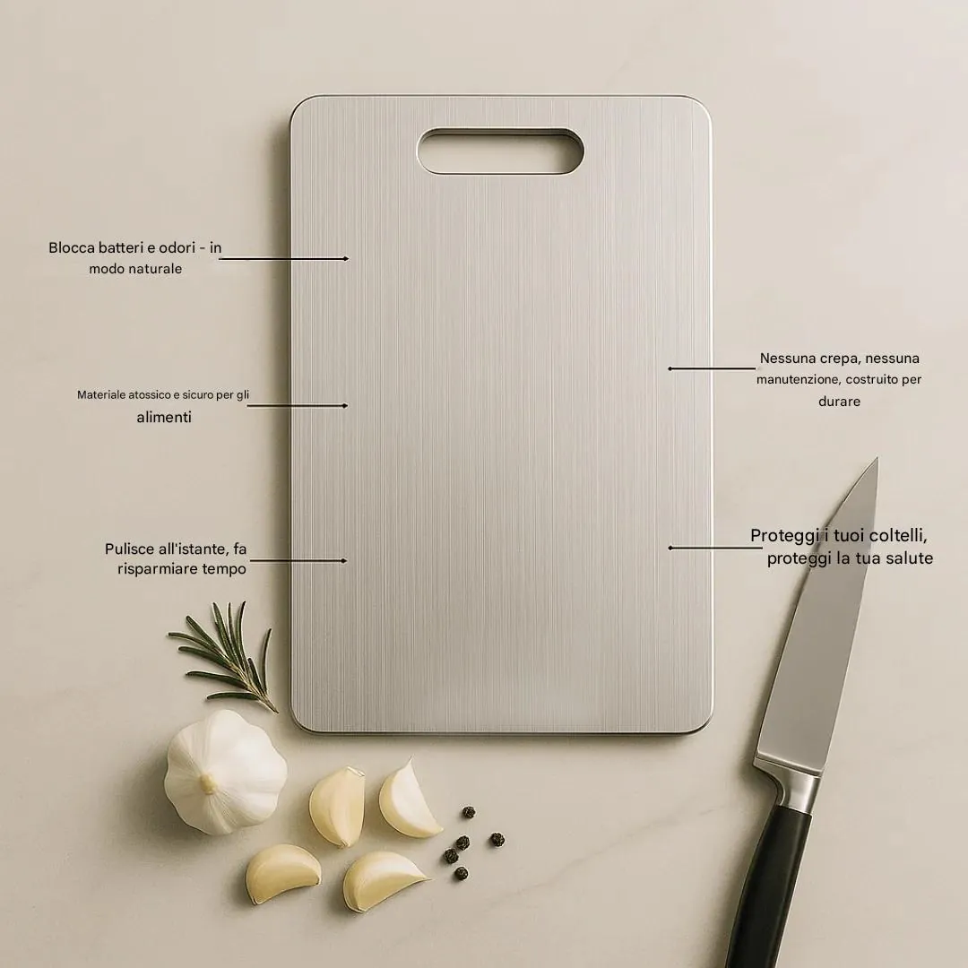 Tagliere in lega di titanio Wmcer™: un accessorio essenziale per la cucina, ultraresistente, igienico e adatto ai coltelli